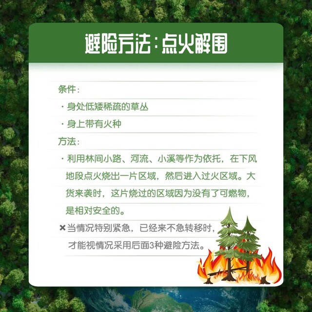 发现自己身处森林着火区域,不要惊慌,要判明火势大小、着火时的风向,应当逆风逃生,切不可顺风逃生。