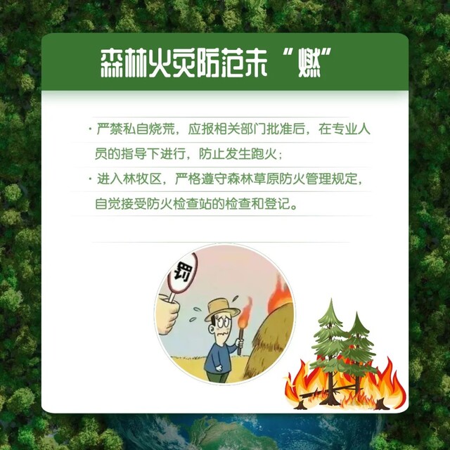 ● 森林防火是指失去人为控制,在林地内自由蔓延和扩展,对森林、森林生态系统和人类带来一定危害和损失的林火行为。森林火灾是一种突发性强、破坏性大、处置救助较为困难的灾害。
