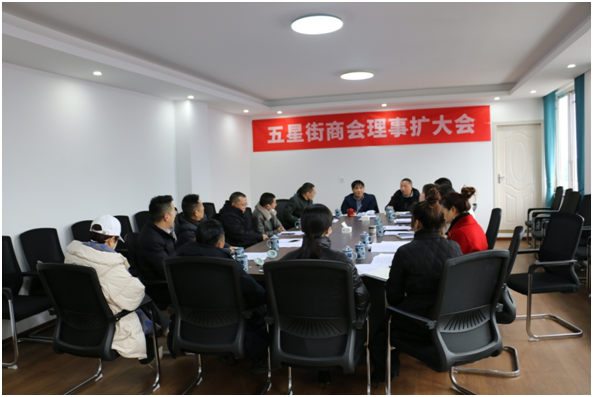 商会理事会成员、监事17人出席会议。五星街党工委副书记、办事处主任向鹏应邀出席会议并发言。