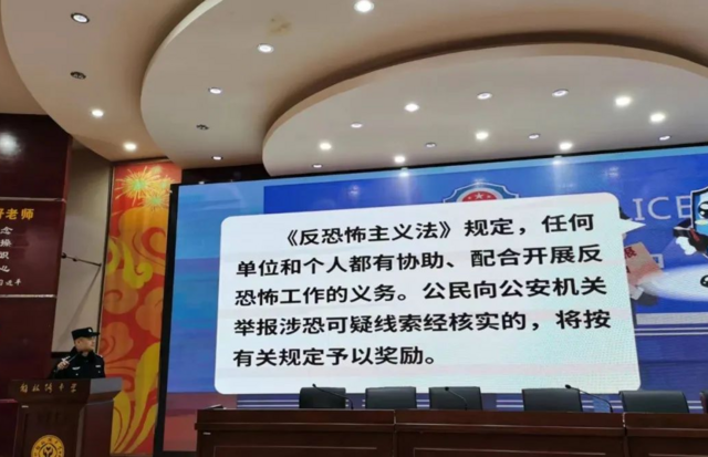 “大家知道常见的恐怖袭击手段有哪些?如何识别恐怖嫌疑人?如何进行自救互助吗?”在商业广场、主要街道和村组院落,民警通过摆放展板、悬挂横幅、设置讲解台的方式,向过往群众介绍当前反恐怖形势和相关法律法规,讲解常见的恐怖袭击手段,提升应对突发事件的自保能力。