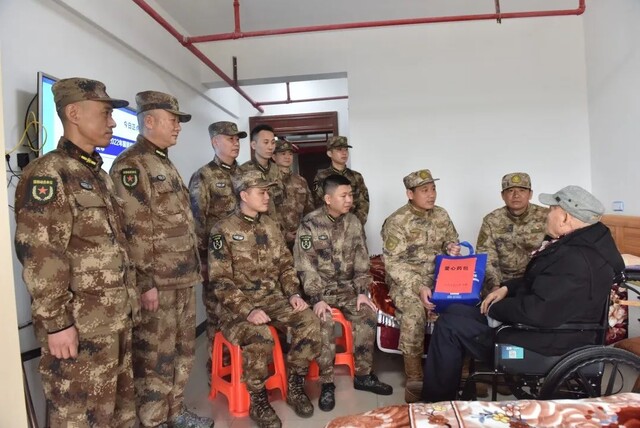 区人武部的官兵们还慰问了生活在养老中心的抗美援朝老战士杜世鹏,听他讲述自己从军的光荣历程。