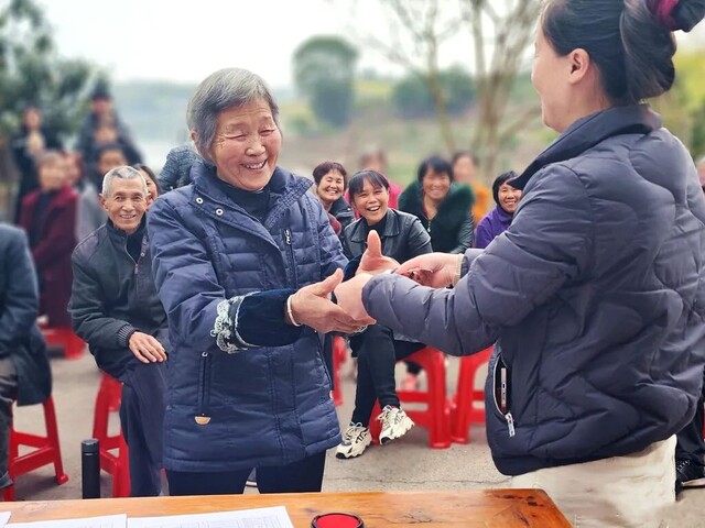 “老刘,搞快点,领钱哦。”3月1日,自流井区荣边镇雨潭村十组的小道上,村民三三两两快步前进,边走边聊,满脸笑容。当天,雨潭村股份经济联合社在十组举行成员分红大会,向村民发放分红资金,共享劳动成果。