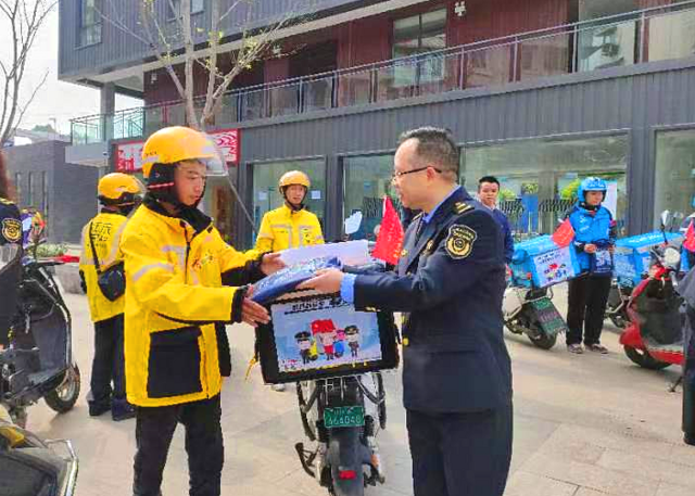 社会共治“骑”携手,共同维护食药安。食品药品安全直接关系人民群众身体健康和生命安全。外卖骑手作为送餐送药的重要一环,此次被邀请参与到活动中,光荣成为“药品安全宣传员”“光盘行动宣传员”。两支队伍的成立,让骑手们利用与消费者互动频繁、点多面广的优势,向群众宣传药品安全知识,同时把拒绝餐饮浪费的倡议传递给消费者。这也是继区市场监管局推进食品安全“两个责任”,探索食品安全社会共治之后,进一步探索新就业群体党建工作与社会基层治理相互融合的又一新做法。