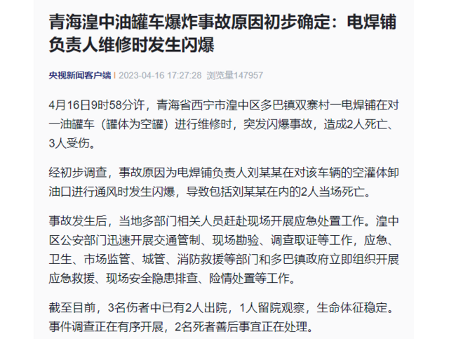 事故原因为电焊铺负责人刘某某