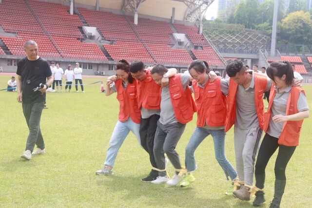 “协力竞走”“六人七足”环节,比赛开始,只听一声哨响,参赛选手们喊着整齐的口号:“一二、一二”“左右、左右”奋力向前冲去。参赛队伍团结一致、默契十足,团队精神非常震撼。