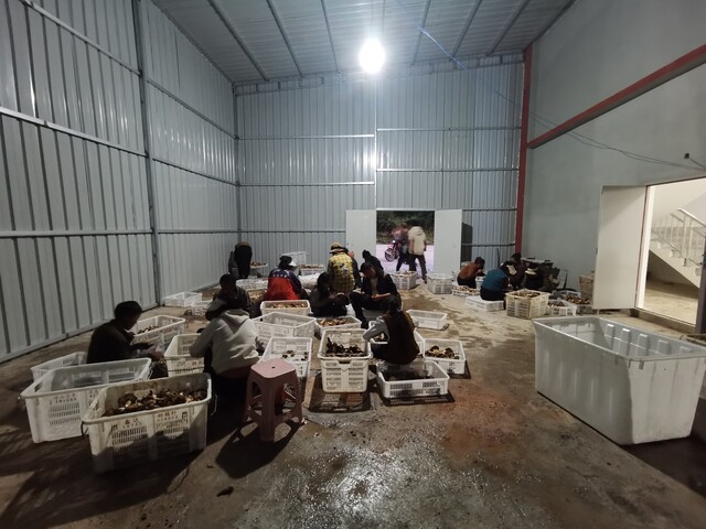 德西村的菌类加工车间内,工人们在进行初步分拣。