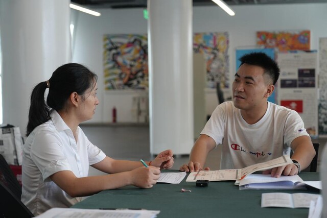 成都市成华区行政审批局在项目现场设立“流动审批服务点”,为商户办理行政审批手续。(詹妮 摄)