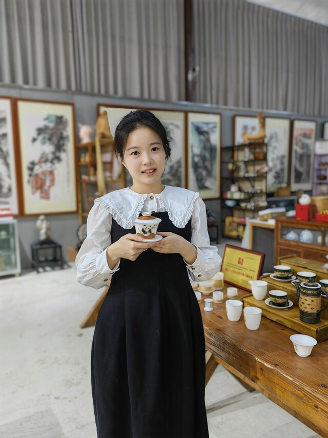 在文创工作室,宽敞的操作间堆满白瓷盖碗、竹丝、剪刀、镊子等各种原材料和工具。“进入这个行业,很大因素是受到我父亲的影响。”白梓忆带领记者来到展示区,碰到了她的父亲白静波。