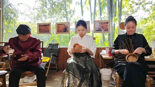 白梓忆的传承创业之路并不是一帆风顺的。竹编技艺零基础的她,拜师到了国家级非遗代表性传承人赵思进门下。“竹编是门辛苦活,从一根普通的竹子到实用的竹编制品,要经过锯、切、剖、削、编等一系列工序。编织一套盖碗,熟练工要花费8个多小时才能完成编织。”白梓忆说,自己刚开始学这门手艺时,手被竹篾刮伤流血那是家常便饭,而且经常一不小心就会被篾条上的竹丝刺伤。如今,经过不断练习,熟能生巧,白梓忆已经能够独立完成一些竹编编织。