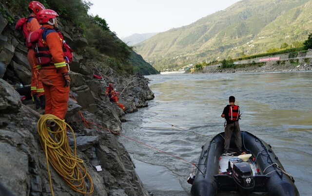 2024年8月30日,救援人员在何小青出事流域进行搜救。金川县委宣传部供图