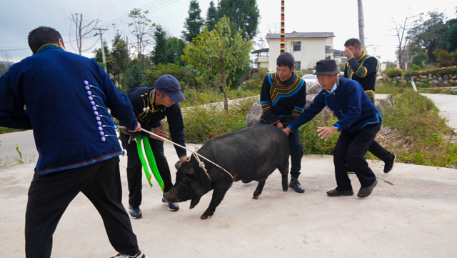 “快准备开始咯.....”一大早,住在德育村六组的吉木你使大哥一家身着盛装,一切准备工作妥当,紧接着便拉开了杀年猪的序幕。在彝历新年这一重要节日里,宰杀年猪不仅是一项必不可少的传统习俗,更蕴含着深厚的文化意义与讲究。所选的年猪往往是精心饲养了一整年的黑猪,其体态越肥硕,便越被视为吉祥与富足的象征。