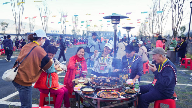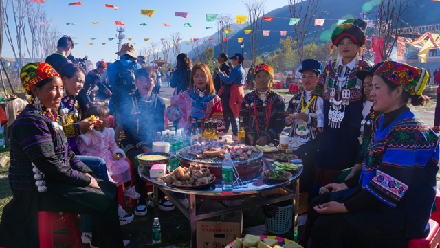 千人迎客宴无疑是本次活动的重头戏,香气四溢的烧烤、鲜嫩可口的坨坨肉、软糯香甜的荞粑,以及辛辣爽口的烧辣椒,共同构成了一顿丰盛的彝历新年盛宴。游客们与热情好客的彝族同胞围坐一堂,共同享受着大口吃肉、大口喝酒的畅快,畅谈着人生的点滴,共同庆祝着新年的吉祥与美好。