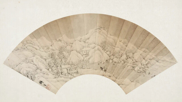 清·奚罔·雪景山水图扇面 图据四川博物院