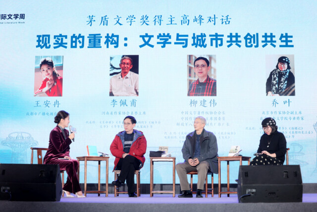 在颁奖环节之外,四川杨红缨儿童文学发展中心举行了挂牌仪式。李佩甫、柳建伟、乔叶三位茅奖作家还展开了一场沙龙对话—-“现实的重构:文学与城市共创共生”。