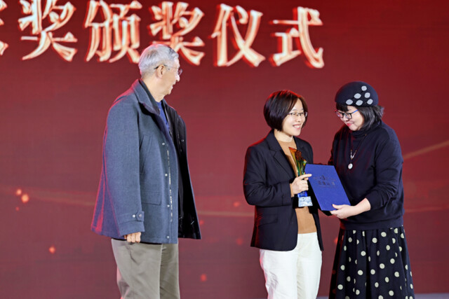 第九届华语青年作家奖的“新批评奖”获得者项静领奖