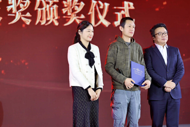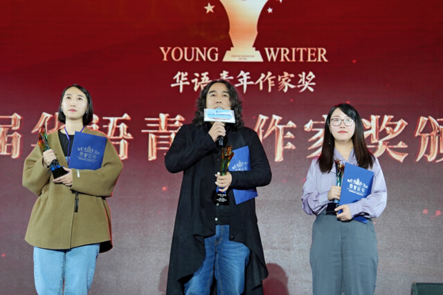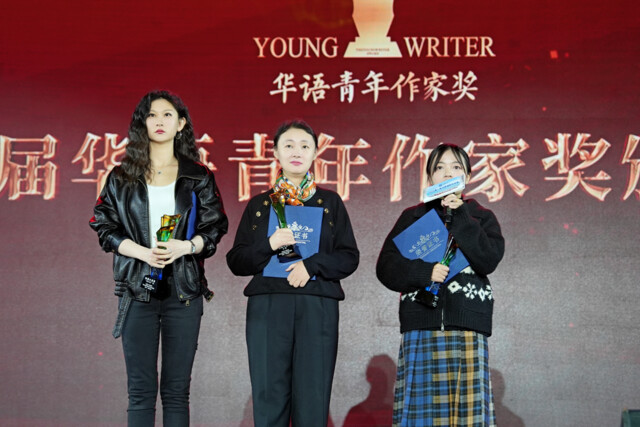 第九届华语青年作家奖的“中篇小说奖”三位获得者领奖