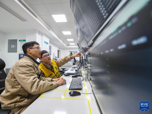 2024年12月27日,在川渝1000千伏特高压交流工程铜梁1000千伏变电站主控制室内,国网重庆超高压公司的运维人员通过智能巡视系统监控变电站设备的运行情况。新华社记者 黄伟 摄