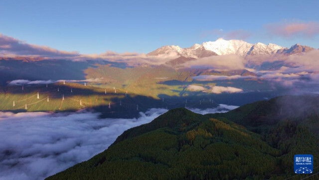 这是2024年10月21日在四川省甘孜藏族自治州泸定县二郎山上拍摄的川渝1000千伏特高压输电线路(无人机照片)。新华社发(刘湘钒 摄)