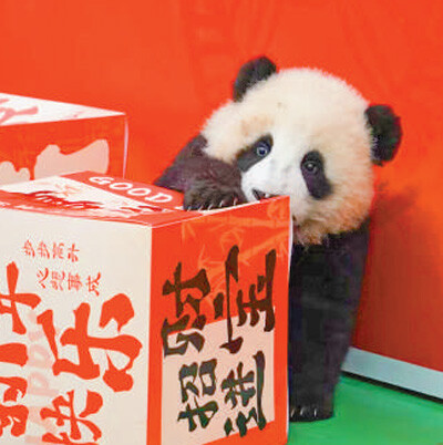 2024年新生大熊猫幼崽在熊猫基地新春主题活动中亮相。