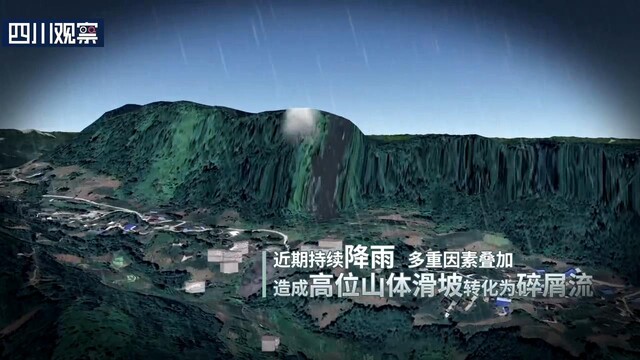 2025年2月8日11时50分许,宜宾市筠连县沐爱镇金坪村二组突发山体滑坡。初步研判,本次灾害因近期持续降雨及地质条件影响,造成高位山体滑坡转化为碎屑流,形成长约1.2公里的碎屑堆积体。滑坡方量达到10余万方。四川观察原创3D视频,还原灾害发生过程。