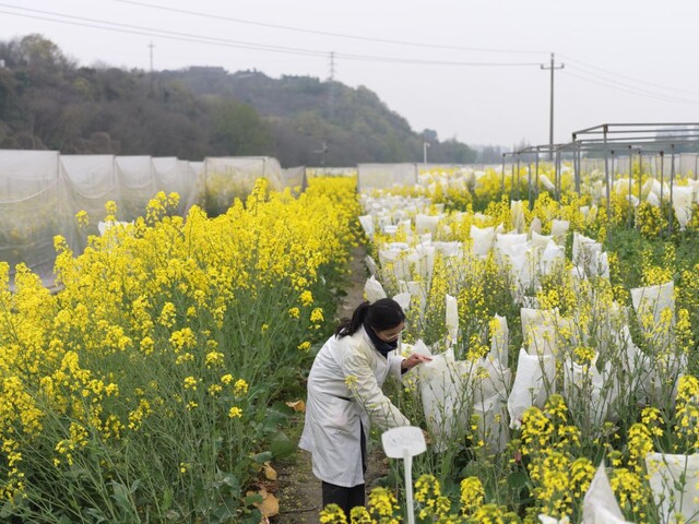 在这里,有上千年前自然形成的地方油菜品种,也有今年刚孕育出的高产高油品种;有能长到两米多高的四川省主推高产品种,还有为造景定制的矮杆粉色花瓣油菜。