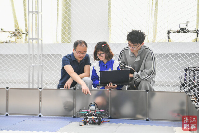 另一边,在特殊环境机器人技术四川省重点实验室的动捕实验室内,研究人员霍建文正与西南科技大学通信专业大三学生张鑫月调试飞控算法,旁边的队友正在模拟器里验证路径规划模型,搭载了“异构飞控智航系统”的无人机再次迎来了试飞。