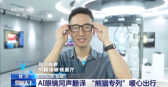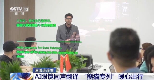 总台记者 赵雄:我手上拿的这副眼镜就是出现在海南消博会上的同声翻译眼镜。戴上去之后,看起来跟普通眼镜没什么区别,但是其实我的眼前看到的就是我所说的内容,被同声翻译成外语。