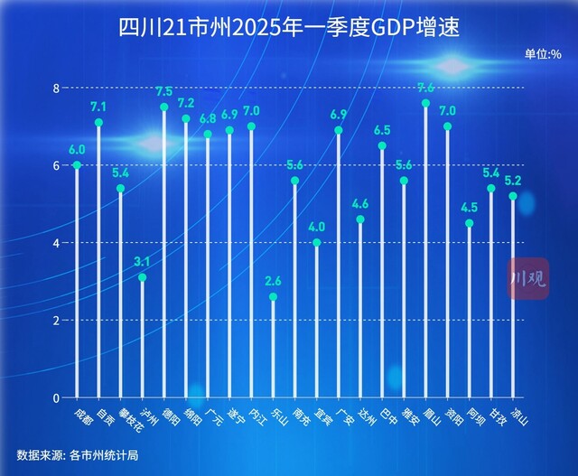 也有隐藏的危机。一季度,宜宾、泸州、达州、乐山、凉山等多个经济体量较大的市州,GDP增速未能跑赢全省。