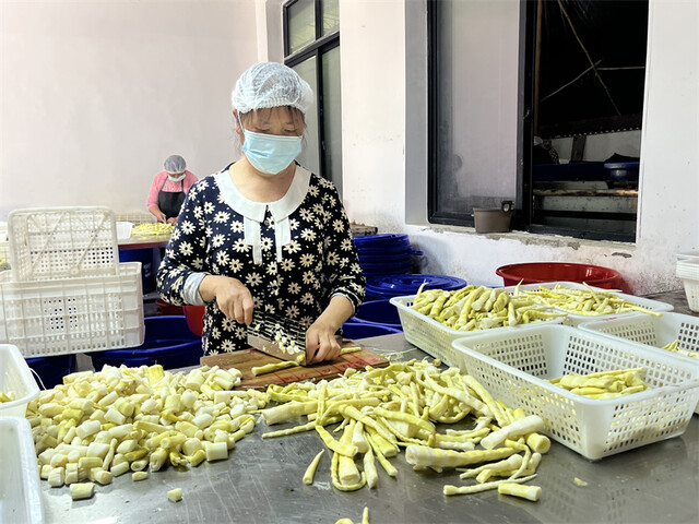 工人正在加工竹笋