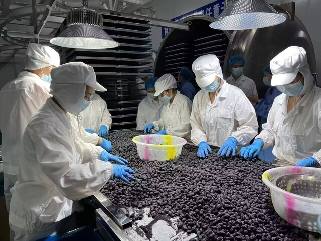 12日下午15点,位于仁和区仁和镇立新村的攀香源农产品开发有限公司会议室里,由一名副关长带队的攀枝花海关送政策上门工作小组,与该公司相关人员就出口贸易存在的难点问题进行面对面沟通,随后工作小组深入到制作高端果品冻干的生产流水线现场指导。在这里,刚从盐边北部产地采收到的新鲜桑葚正在加工,产品将于今年6月份送往德国参加展销。