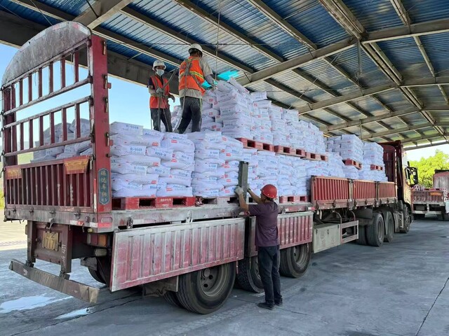 5月12日上午,攀枝花市米易县一枝山工业园区,两辆载重30吨的大型挂车停靠在东方钛业有限公司成品货场,几台叉车来回穿梭,有序将成袋的钛白粉码放在车厢里。当天,约120吨钛白粉将从米易火车站运往上海,约一个星期后,在攀枝花海关报关,经海路运往北美的加拿大。