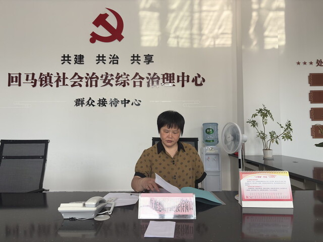 再次见到冉体兰,是个炎热的下午。烈日匝地,在大英县回马镇社会事务和社会治理办公室的一楼接待中心,她穿着藤黄色的短袖棉绸衬衫,短发干练,正记录来访群众的事宜。