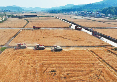 中江县农业农村局总农艺师陈正龙介绍,依托县乡村三级推广网络,县农技推广中心和乡镇农技站正组织农技、农机等农业科技服务人员深入田间地头,及时提供服务。“全县37万余亩小麦正加速收割,预计端午节前收完,水稻插秧也将陆续进行。”陈正龙说。