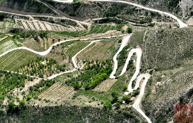 抵达“忘忧云庭”的盘山路,空中俯瞰蜿蜒曲折。 摄影 华小峰