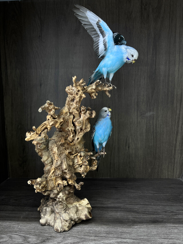 据当地“动物标本”制作技艺的达州市非遗第四代传承人王茂华讲述,这项“独门绝技”是羽毛和树根相结合的工艺产品,利用羽毛的嫁接和移植技术还原动物的形态,再与根雕相结合,形成独特的艺术风格,且能够永久保存。