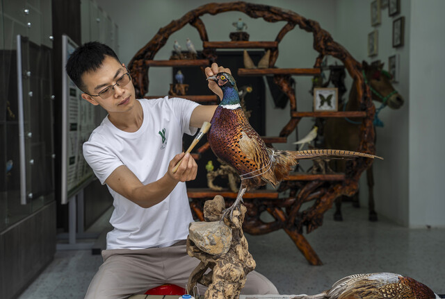 用传统技艺制作鸟类标本需7天左右,大型哺乳动物则需半月。有了资金的铺垫,他们大胆尝试技术创新。通过技术改良,标本制作大部分流程实现了自动化,鸟类标本完成“清洗消毒、剥制填充、缝合整形”全部流程压缩在1小时左右,一般哺乳动物标本的制作2至3天即可完成。