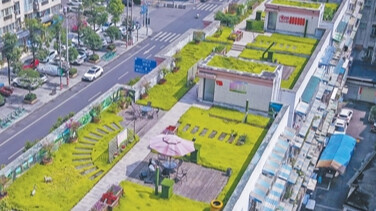 花草蔬果、休闲座椅、文化景观……登上菜蔬新居小区楼顶,花园打通连成一片,大伙共享一个1100平方米的花园。“以前可不是眼前这幅光景,楼顶搭建多,漏水还严重。”安公社区党委副书记谭兰兰回忆。