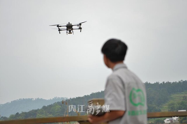“农业飞手”晏吕强在操作农用无人机