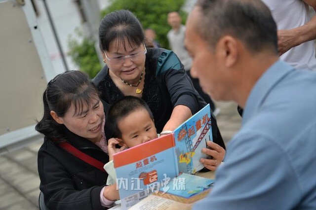 三合村村民在翻阅图书