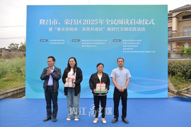 隆昌市、荣昌区2025年全民阅读启动仪式上向普陀村、三合村农家书屋赠送书籍