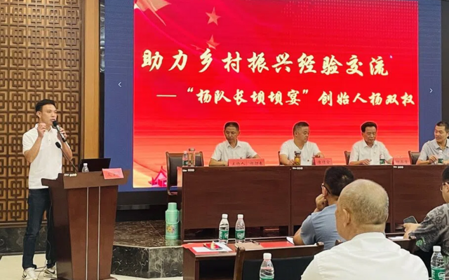 另一位带头人杨双权则创新“餐饮+文旅+种植”融合模式,打造乡村综合体。“杨队长坝坝宴”开业至今接待游客超3万人次,村民分红占比高达85%。“乡村振兴正是我们这代中青年人的考场!”两位致富带头人的发言赢得满堂掌声。