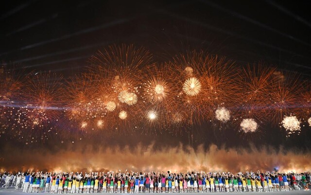 这是8月7日拍摄的开幕式上的焰火表演。新华社记者 陈振海 摄