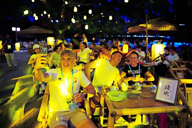 世运会运动员在望江楼公园沉浸式夜游。图据成都文旅集团