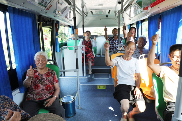 8月19日,泸州市龙马潭区双加镇凉坳村,村民刘桂英背着背篓,坐上905路公交车到镇上赶场。凉坳村距离场镇近10公里,以前没有公交站点,刘桂英要先步行40多分钟,走到距离该村3公里远的鱼山坝公交站乘车,一来一回多走6公里,多花一个半小时。去年10月中旬,龙马潭区将这条公交线路延长至凉坳村村口,沿线200余户近千名村民受益。