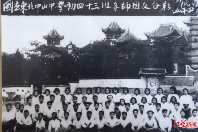 ▲1946年四川威远静宁寺外,国立东北中山中学流亡学子的毕业照