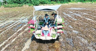 农户使用井程公司的农机插秧。受访者供图