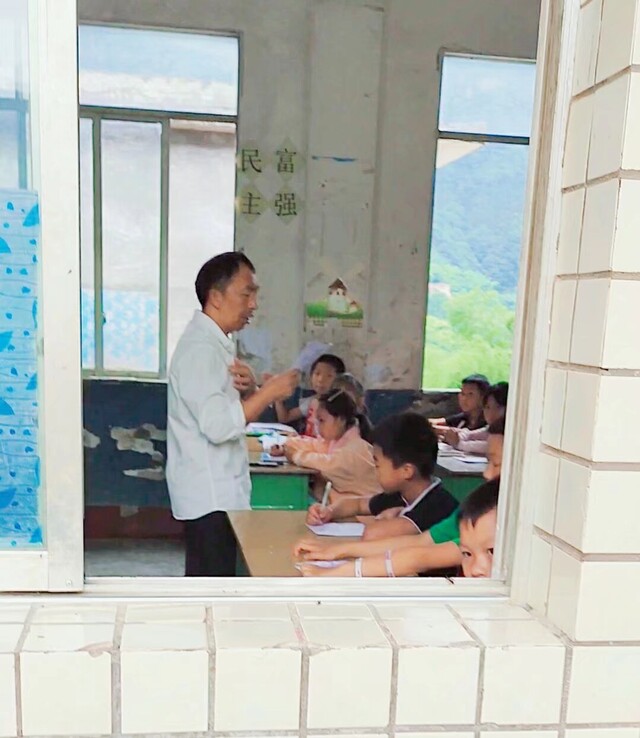 那是在兴文县麒麟苗族乡中和村的四望小学,中和村、银鹤村的孩子们都在这里念书。“我们这个地方,师资短缺,他同时肩负五六年级的数学教学工作。”同是银鹤村人,刘桂英从小就听身边的长辈说起方老师,“他从外面读了书,回到我们村里,一直教书到他退休,是全村公认最值得尊敬的老师。”