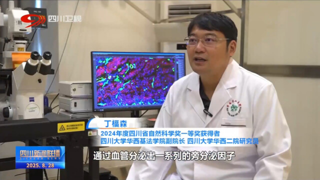 2024年度四川省自然科学奖一等奖获得者、四川大学华西基法学院副院长、四川大学华西二院研究员 丁楅森:通过血管分泌出一系列的旁分泌因子,从而主动地去调控周围的所有细胞。最关键的目的就是发现纤维化这么一个病理现象的治疗手段。
