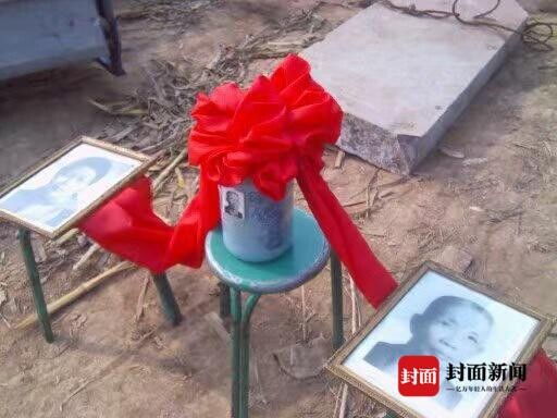 在抵达一位山西临汾的老兵家里后,刘德文将老兵的骨灰坛置于正中,用一个绣球连起两张照片。一张是老兵,一张是等了他一辈子的妻子。(图由受访者提供)