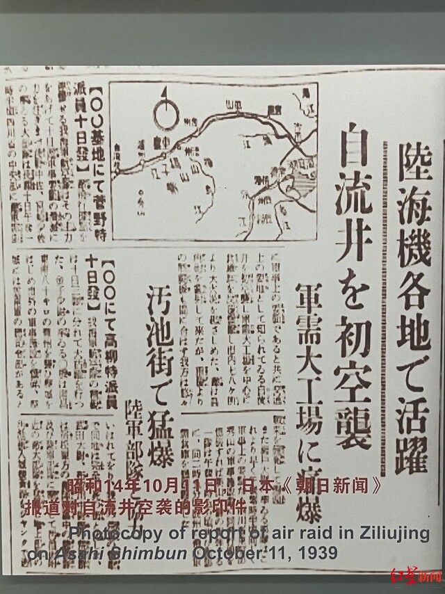 ▲日本《朝日新闻》报道对自流井空袭的影印件 图 据自贡市盐业历史博物馆